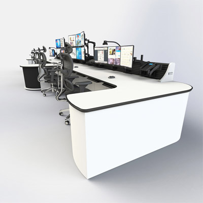 舒适系列调度集中控制台定制设计应用于大型集中控制调度中心,全敞开式简洁干练的造型极富现代科技感,人造石台面更让集中调度控制台定制别具一格的风格,为控制中心注入一种气质..