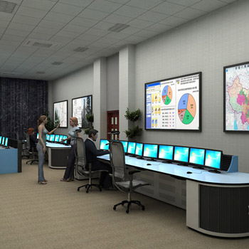 中创美品牌定制3联机房监控操作台适用于各种计算机机房及监控中心环境,并为您设计机房监控操作台,机房操作台,3联监控操作台造型效果展示图、平面布置图、空间规划图...